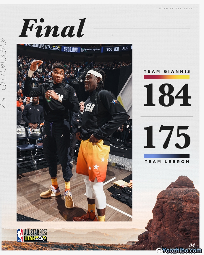 24直播网2月20日讯 在结束新秀赛和扣篮大赛为主的单项赛事后,NBA全明星大赛今日打响。今年规则上变化不大,依旧是前三节每节12分钟正常打,最后一节则是以前三节总得分高的一方加上24分为目标得分,率先取得目标得分的一方为胜者。赛前两队选主力和替补拉开序幕,詹姆斯队在约基奇“毛遂自荐”中建立起恩比德、欧文、东契奇、詹姆斯、约基奇的首发阵容;字母哥则是以他为主,加上塔图姆、莫兰特、米切尔和马尔卡宁。首节字母哥轻松扣篮拿下全场第一分,随后他因为手腕的伤势直接申请犯规下场就此结束自己的正赛之旅。开局对决双方依旧是不设防各种精彩暴扣拉开序幕,两队外线手感不佳,其中利拉德首节7次三分尝试仅命中1球;不过外线手感不佳不影响双方轻松拿分,首节塔图姆拿下13分双方均轰下46分。次节双方延续高效对攻,莫兰特上演360度转身扣篮,詹姆斯也是招牌的暴力砸框,马尔卡宁虽然首次入选但一点不怵甚至想来一次空接大风车暴扣,最后字母哥队以一波10-4的小高潮赢下这一节对决,同时半场总比分上99-92领先詹姆斯队。下半场字母哥外线突然爆发,其中利拉德大秀超远三分一人命中4球,塔图姆更是炸裂飚进7记三分单节砍下27分,这波疯狂进攻结束后字母哥158-141领先字母哥进入第四节,而这也意味着落后的詹姆斯队要在第四节拿到41分才能取胜,巨大分差也让末节没有太大悬念,詹姆斯队虽然尝试推速度并占据微弱上风但难以扭转局面,最终,字母哥队轻松击败詹姆斯队拿下比赛胜利。