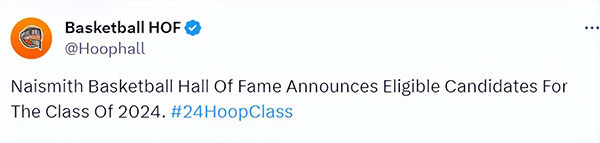 24直播网12月22日讯 ,奈史密斯篮球名人堂官方今日公布了2024年名人堂首批候选者名单,一共有151位球员、教练、篮球从业者和团队进入首批候选名单。