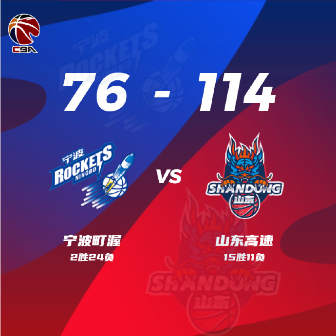 24直播网1月13日讯 CBA常规赛继续进行,山东迎战宁波,宁波近期遭遇三连败,目前2胜23负继续联赛垫底,山东迎来连胜后战绩来到14胜11负,暂列联赛第7位。比赛一上来宁波率先找到状态一度占优,中段山东进攻逐渐复苏,吉伦沃特里突外投单节独得13分,山东稳住阵脚后拉开比分,首节结束时山东确立17分优势,次节回来,兰兹博格续上火力,内外开花的他予取予求单节狂砍18分,宁波无法打出连续的得分高潮,半场战罢,山东将领先优势扩大到27分。下半场回来,吉伦沃特再度发力单节砍下13分,山东延续火力继续拉开比分,三节结束后山东已经领先30分,末节上来,宁波进攻滞涩追分乏力,山东提前换上替补阵容,比赛提前失去悬念,最终山东114-76大胜对手。