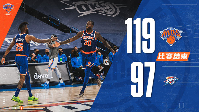 尼克斯(20-19):兰德尔26分12板12助2断、巴雷特32分5板3助3断、布洛克14分2板、奎克利21分3板4助2断、伯克斯15分4板2断