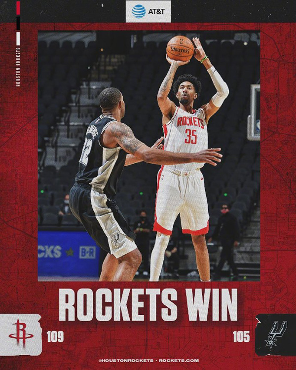 24直播网1月15日讯 马刺今日坐镇主场迎来火箭的挑战,火箭刚刚完成交易送走球队核心詹姆斯-哈登,新援奥拉迪波没能赶上比赛外,沃尔和戈登因伤也均缺席比赛。火箭虽然缺兵少将但却在上半场一直占据着上风,伍德成为进攻端绝对核心并半场就取得15分11篮板的两双数据,他们也在第二节确立起两位数的领先,不过马刺在第二节后半段回暖并依靠两记三分和两记2+1将劣势追至3分结束上半场。下半场马刺凭借开局6-0的攻势反超比分,但一直占优的他们没能顶住压力,末节一直发挥失常的德罗赞和阿尔德里奇联手拿下14分曾为马刺拉开9分优势,但火箭随后突然爆发,在伍德连拿8分的带领下火箭送出15-2的攻势扭转局势。德罗赞则在最后时刻连续错失扳平机会。最终,火箭在缺兵少将的情况下险胜马刺结束2连败。