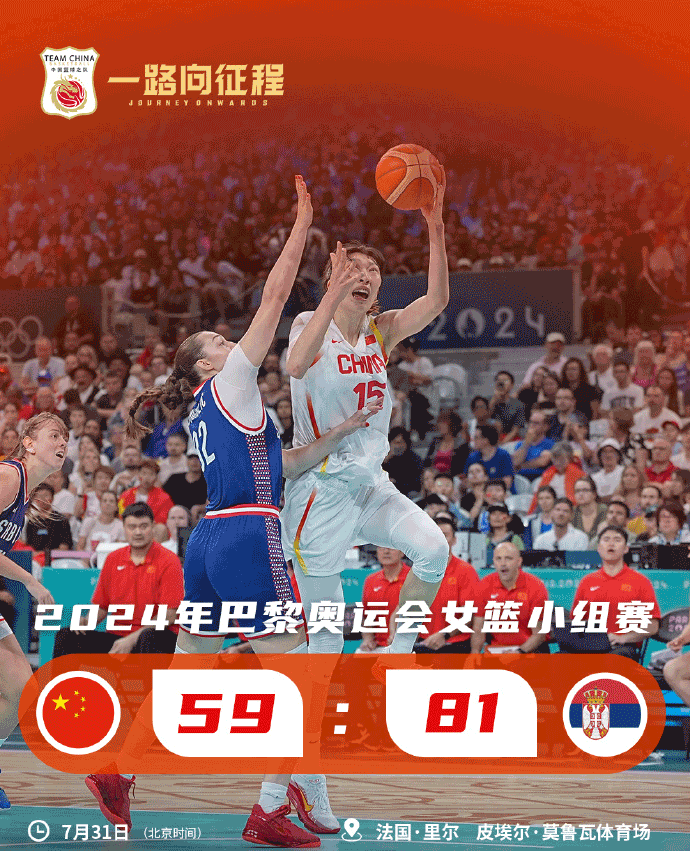 24直播网7月31日讯 奥运女篮小组赛A组,中国女篮迎来小组赛第二个对手塞尔维亚女篮。比赛开始,中国女篮很是慢热半节仅得4分,王思雨一扫颓势首节独揽7分,黄思静和韩旭也接连外线开和,但塞尔维亚全民皆兵能给出回应,首节中国女篮落后6分,次节韩旭接连内线造杀伤追分,杨力维外线也开和,李月汝强打追平比分,双方展开拉锯战,塞尔维亚女篮半场还是领先6分。下半场,中国女篮进攻端还是不流畅,塞尔维亚顺势拉开双位数领先,中国女篮单节仅得11分,三节落后到12分,末节塞尔维亚6-0继续扩大领先,李梦接连三分终于止血,黄思静神仙球三分续命,但塞尔维亚总能回应拉开20分以上领先,最终中国女篮59-81不敌塞尔维亚。