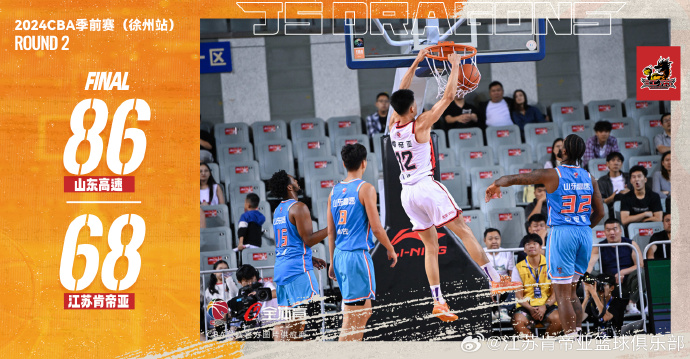 24直播网 9月21日讯 CBA季前赛江苏徐州赛区,江苏对阵山东,首场季前赛两队皆吃到败仗。比赛开始,全华班的江苏进攻端很困难,于德豪带领山东连续打成反击打出21-5梦幻开局,随后江苏接连罚球追分,但谢智杰有攻有传稳住13分领先,次节双方命中率都有下降,山东队双外援还与江苏球员发生冲突,双方连续走上罚球线,但山东还是保持住13分领先。下半场,山东上来一波11-2直接拉开20分以上领先,随后双方围绕着20分左右分差展开拉锯战,末节山东连续失误,江苏一波10-4小高潮追近比分,但山东依靠许梦君三分回应稳住优势,最终山东86-68轻取江苏。
