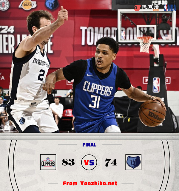 24直播网7月13日讯 NBA夏季联赛,快船对阵灰熊。比赛开始,灰熊内外开花开局8-2领先,快船大举反击回敬19-5的进攻高潮强势反超并将分差拉开到两位数,灰熊迅速回暖打出9-0迫近比分,半场战罢快船41-35领先6分。易边再战,灰熊多点开花完成10-1的攻势重夺领先,此后双方陷入缠斗,比分始终紧咬,洛夫顿高效输出,快船多点开花还以颜色,末节双方争夺陷入白热化,关键时刻快船连中三分,灰熊苦苦追赶无果,最终,快船83-74力克灰熊,取得胜利。