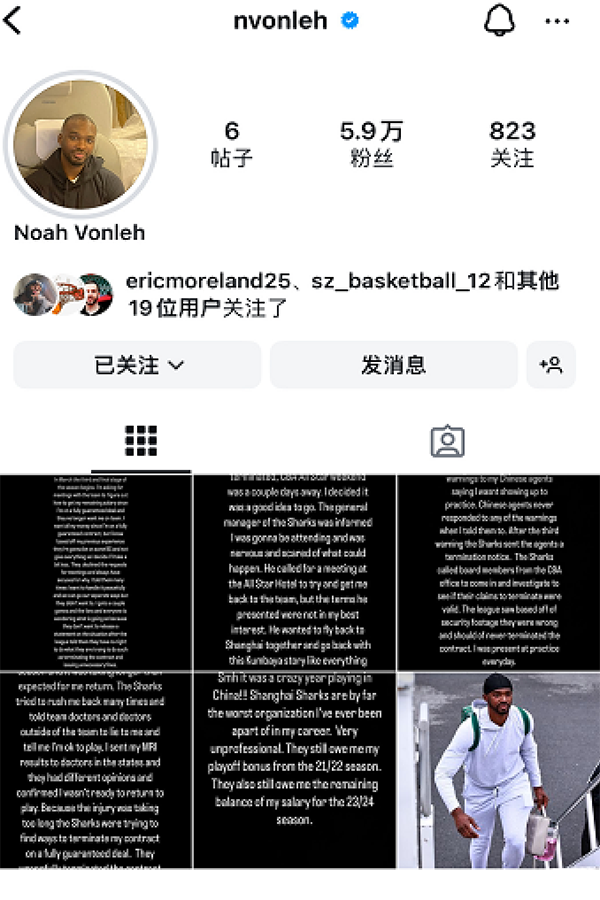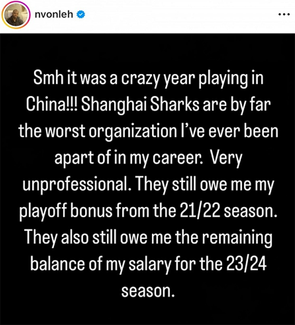 24直播网讯 上海男篮被外界关注,引发不小的争议,起因是曾效力上海男篮的外援冯莱在社交媒体上怒喷球队,这位悍将连续发文,直言:“上海大鲨鱼是我生涯至今效力过的最糟糕的俱乐部。非常的不职业。”