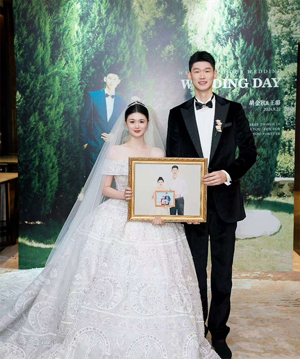 24直播网讯 10年的爱情长跑,虽然已经有了一对可爱的宝宝,可是该有的仪式感还是不能少的,在结束完中国男篮的集训,在新赛季CBA即将来到之前,胡金秋和妻子王璐举办了婚礼。