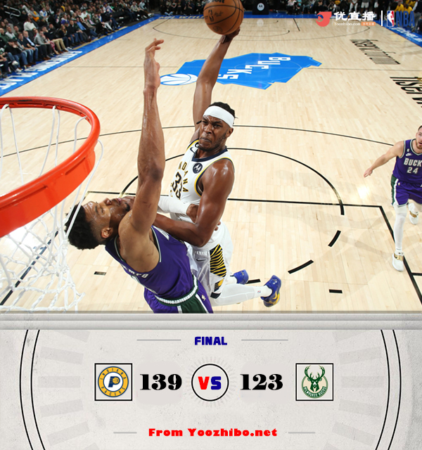24直播网3月17日讯 NBA常规赛,雄鹿今日迎战步行者,前者两连胜后继续高居东部榜首的位置,后者上场比赛则是不敌活塞暂列东部第十二位,此役大洛佩兹、克劳德、阿伦、哈利伯顿、杜阿尔特和马瑟林缺战,希尔德和特纳复出。比赛上来,雄鹿就率先进入状态打出10-3的开局取得领先,分差也逐渐达到了两位数,次节步行者开始发起反扑并成功抹平分差,好在是雄鹿此后及时调整,打出一波攻势给出回应,半场结束时步行者依旧落后9分;下半场回来双方突然展开对攻,虽然雄鹿单节拿到37分,但步行者的攻势更加凶猛,狂砍49分后实现反超,末节雄鹿的情况还是没有好转,步行者乘胜追击将分差拉开到十分以上,雄鹿没有再获得任何机会,最终步行者139-123轻取雄鹿拒绝连败。