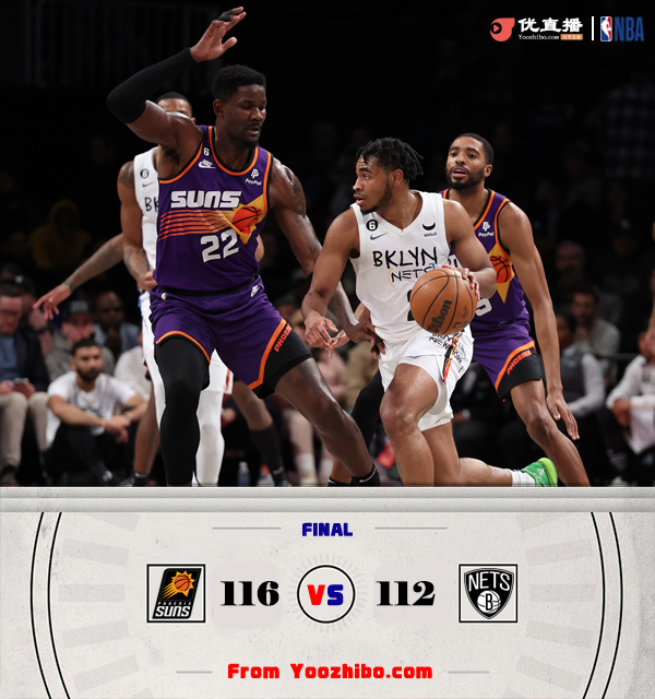 24直播网2月8日讯 NBA常规赛继续进行,篮网主场迎战太阳,篮网刚刚交易走欧文,迎来丁威迪和芬尼-史密斯,但本场教练决定两人不上场,渡边雄太和小库里也不打,但西蒙斯缺席5场后复出;而因腹股沟伤势缺席21场的布克本场也终于迎来复出。上半场属于布克和托马斯的对攻战,布克复出状态十分不错,里突外投连续得分,而艾顿次节也是连续吃饼单节得分上双,而篮网进攻端主要靠托马斯撑起,他继续延续火热状态半场再砍下24分,双方比分始终拉不开,太阳得分点更多取得微弱领先。下半场,布里奇斯找到手感里突外投连砍8分帮助太阳拉开双位数分差,但托马斯马上带领篮网回应一波12-0攻击波,随后双方展开拉锯战,太阳依靠替补不错发挥再次拉开双位数领先,但篮网连续外线发炮再次10-0咬住比分,关键时刻布克两罚全不中,但“点球”大战篮网没有暂停非常致命,艾顿两罚全中杀死比赛,最终太阳险胜篮网,取得3连胜。