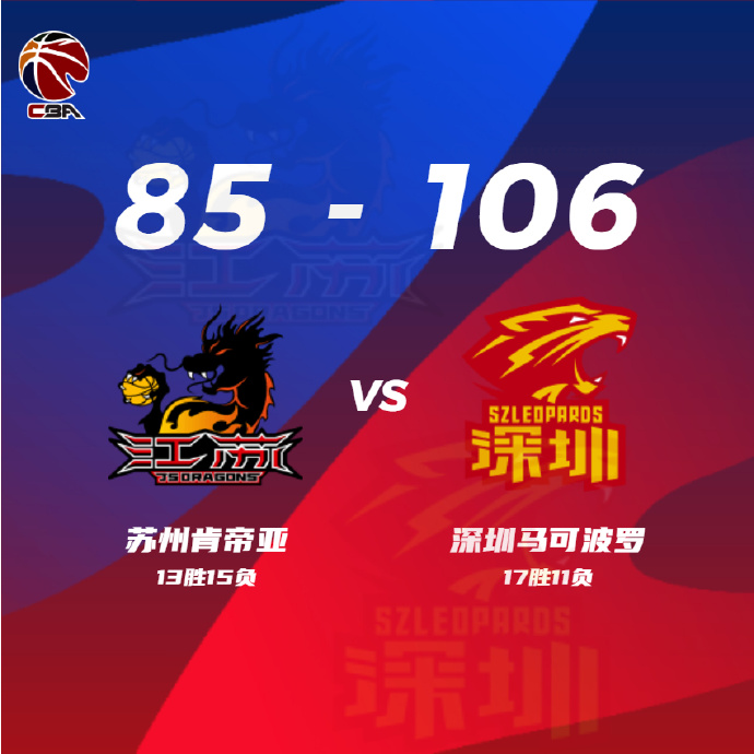 24直播网1月19日讯 CBA常规赛第二阶段江苏对阵深圳,江苏目前排在联赛第十三,最近球队状态低迷遭遇4连败,深圳则排在联赛第八,上场比赛他们不敌广州,沈梓捷继续因为肩伤缺阵。开场后江苏首先在外围发炮,开场不久赵率舟和马建豪就命中五记三分,深圳则是内外开花打得更为合理,孙浩钦和贺希宁轮番拿分,首节深圳取得5分优势。第二节回来布莱克尼开启得分模式连连砍分,但深圳得分点更多,顾全和萨林杰帮助深圳守住领先优势,上半场深圳51-45领先。下半场回来江苏依旧主要靠双外援拿分,深圳这边则是萨林杰和顾全一内一外打得风生水起,他们帮助深圳将分差拉大到两位数,江苏也开始失误增多,分差一度被拉大到20分。此后深圳牢牢占据场上的主动,顾全也持续火热手感,双方的分差继续被拉大,比赛彻底失去悬念,最终深圳106-85轻松拿下胜利送给江苏5连败。