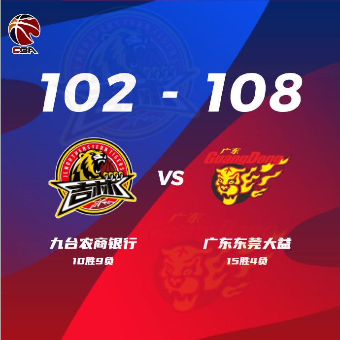 24直播网12月28日讯 CBA常规赛第二阶段继续进行,吉林对阵广东,吉林最近2连胜,10胜8负暂列积分榜第9,而广东则是状态爆棚豪取9连胜,14胜4负排在第4位。双方上来手感都一般,但很快调整外线手感接连打起对飚,广东队全民皆兵还是稍稍占据领先,随后吉林队“二姜”找回手感,姜宇星次节单节砍下12分,加上姜伟泽的外线三分,吉林很快占据双位数领先,好在易建联接连两记三分止血。下半场,徐杰联手赵睿接连外线发炮并送出助攻,帮助广东打出17-5攻击波一举反超比分,末节布鲁克斯接连外线发炮直接拉开双位数分差,但吉林通过三分也能继续咬住,但赵睿挺身而出,得分加助攻帮助广东重新拉开分差,最终广东108-102力克吉林,豪取10连胜。