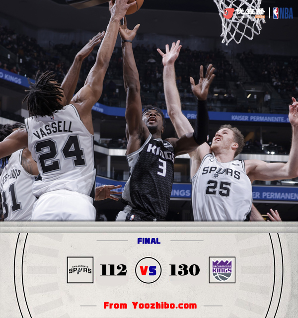 24直播网11月18日讯 NBA常规赛继续进行,国王主场迎战马刺,国王最近状态颇好,接连战胜强队,一波4连胜升至西部第8位,而马刺则是2连败排在西部第13,本场国王4号秀穆雷和凯尔登-约翰逊都不打。国王上来就手感火热,福克斯带领一众首发在外线多点开花打出22-6的梦幻开局并直接建立优势,而马刺迅速调整,迪奥普首节11分,瓦塞尔次节10分,替补又出来个罗比,马刺顽强咬住比分。随后双方展开胶着拉锯战,福克斯联手蒙克里突外投帮助国王重新拉开双位数分差,最终国王130-112力克马刺,喜提5连胜的同时送对手3连败。