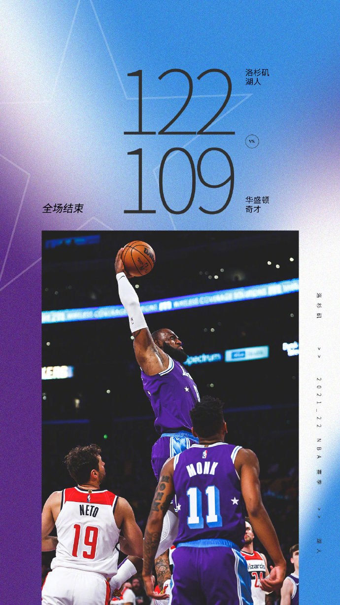 24直播网3月12日讯 NBA常规赛继续进行,湖人主场迎战奇才。湖人同奇才的这笔交易到目前来看是非常失败的, 球队遭遇2连败仅排在西部第九,奇才则是东部倒数第五,仍保留着冲进附加赛的机会。一开场,詹姆斯得分助攻一肩挑帮助湖人开局10-4领先,奇才多点开花回敬9-0的攻击波,首节双方战成26平。第二节,双方依旧势均力敌,比分始终紧咬,末段奇才凭借8-0的攻势在半场结束时以59-52领先7分。下半场,詹姆斯挺身而出,里突外投独得19分帮助球队逆转颓势,三节打完湖人反超7分。第四节,詹姆斯得分助攻一肩挑带队取得两位数领先,随后内外开花拿到个人本场第50分彻底杀死比赛。最终,湖人击退奇才,结束2连败。