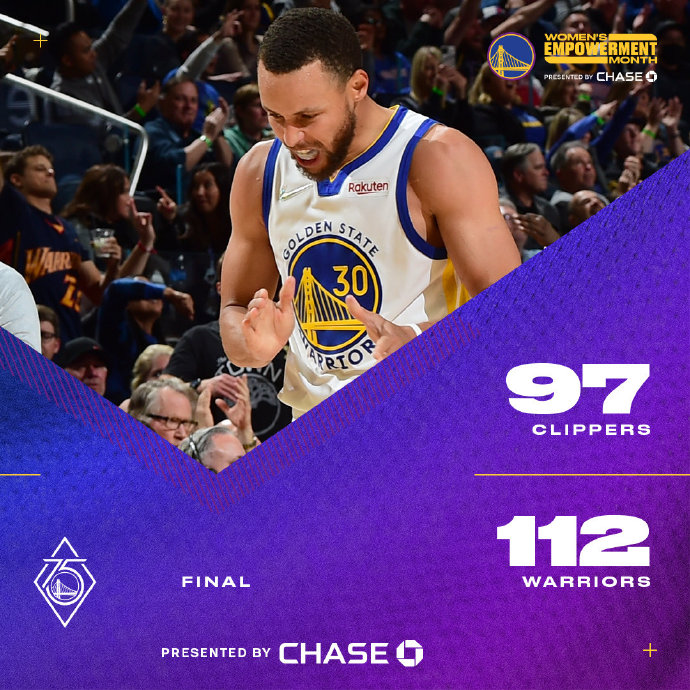 24直播网3月9日讯 勇士今日坐镇主场迎来快船的挑战,勇士上一场大面积轮休后不敌掘金遭遇5连败,目前排名也下降至西部第三,快船则在上一场不敌尼克斯结束5连胜。首节之争勇士前半节表现非常糟糕,前4分钟里仅得4分导致开局被动,不过快船虽然以一波7-2的攻势占据上风,奈何随后也跟着对手节奏不断打铁,勇士在喘息过后及时回暖追上比分,次节勇士开始接管比赛,多点开花的他们先是一波8-0,随后又是一波14-0,这两波进攻帮助勇士取得18分优势进入下半场。第三节争夺勇士彻底接管比赛,以克莱和普尔为首,勇士这一节再胜7分并取得25分的领先,末节快船虽然回暖轰出一波22-8的攻势,但此时分差还有15分之多,而时间又所剩不多无力制造威胁。最终,勇士主场复仇快船,同时结束5连败。