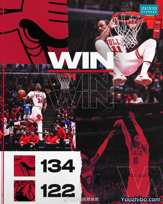 公牛(35-21):德罗赞35分6板6助,武切维奇26分8板7助,格林23分4板,拉文12分4板6助,道苏姆14分4板10助3断,怀特22分6板2断