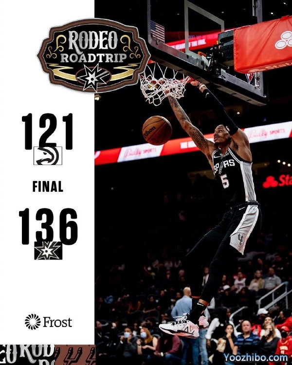24直播网2月12日讯 NBA常规赛继续进行,老鹰坐镇主场迎战马刺队,此役马刺新援理查德森等人缺阵。首节开战,马刺进攻端状态火热,全队本节外线手感出色,三分十投八中,也使球队很快建立了领先优势,节末老鹰连续两记三分稍稍迫近比分,马刺43-29领先结束第一节。次节上来,马刺外线机会变少,两队连续在内线做文章,老鹰逐渐缩小分差,一度只落后6分,但突然又陷入得分荒,马刺顺势打出8-0重新稳住局面,节末,马刺再接连命中三分,珀尔特尔超远压哨三分也中,马刺73-56保持领先结束上半场。易边再战,马刺前半节延续上半场进攻状态,逐渐拉大分差,一度领先至26分,但随后进攻突然断电,老鹰很快打出一波11-0迫近分差,节末穆雷连得四分稳住局面,三节结束马刺103-87领先。末节上来,两队交替取分,老鹰无法防住马刺的进攻迫近分差,随着约翰逊再连得五分,老鹰换上替补,马刺随后也换人,比赛进入垃圾时间,最终全场结束,马刺136-121客场大胜老鹰。