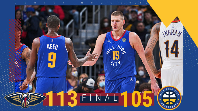 24直播网2月5日讯 NBA常规赛掘金对阵鹈鹕,掘金近来遭遇2连败,戈登因为腿筋不适缺阵。开场后约基奇上来连得7分展现不错状态,但鹈鹕多点开花紧咬比分,两队连续在外线对飙三分,首节掘金领先2分。第二节掘金外线依旧手感火热不断命中三分,英格拉姆站出来带领球队紧咬比分,上半场掘金52-51领先鹈鹕。下半场回来场上比分仍旧胶着,约基奇再次展现进攻欲望接连拿分,不过瓦兰和英格拉姆两人轮番砍分帮助鹈鹕仍旧紧咬比分,三节过后两队打成平手。第四节两队仍旧打得一片火热,第四节后半段鹈鹕通过提速抓反击取得领先,其中琼斯表现优异,虽然掘金通过三分续命,但又是琼斯最后连续制造杀伤帮助鹈鹕守住胜果,他末节6中6独得18分,最终鹈鹕113-105送掘金3连败。