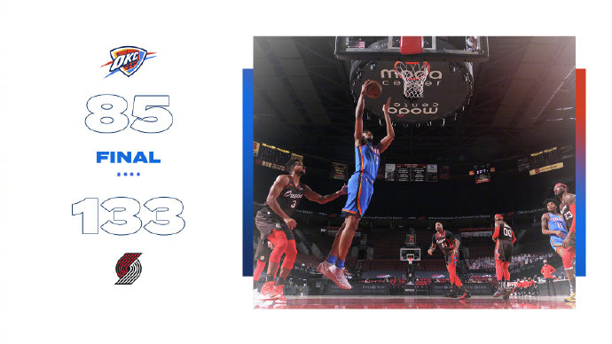 24直播网4月4日讯 NBA常规赛,开拓者今日迎战雷霆,前者上场比赛输给了雄鹿暂列西部第六位,后者也同样是输给了太阳排在西部第十三位。比赛上来开拓者就展示出了压倒性的实力,一波7-0完美开局,之后更是将分差拉开到了两位数,次节雷霆终于有所回暖,一度将分差缩小回个位数,但节末又被开拓者打出攻势,半场结束时场上分差为19分。易边再战,雷霆的表现变得更加糟糕,单节仅拿到13分输给开拓者26分之多,分差最多时已经突破了50分,最终开拓者狂胜雷霆拒绝连败。