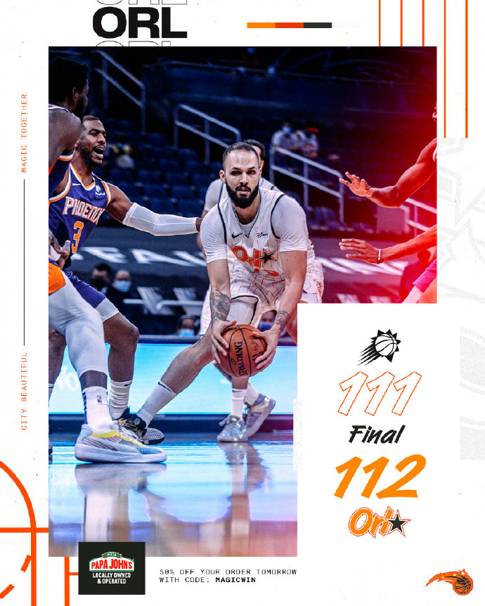 24直播网3月25日讯 NBA常规赛,魔术主场迎战太阳,前者最近状态一般2连败已经排在东部倒数第二位,后者则是3连胜已经跃居到西部次席,双方实力还是比较悬殊。开局阶段太阳凭借开局的小高潮建立领先,随后魔术连续的三分帮助追近分差,布克站出来连续中投帮助太阳首节结束领先8分,次节魔术也打出一波进攻波抹平分差,双方展开拉锯战,半场结束双方打平。下半场回来,太阳一波11-0重新建立领先优势,武切维奇苦苦支撑着魔术进攻帮助追分,太阳带领5分优势进入末节,末节魔术打出10-4开局再次反超比分,随后双方展开胶着拉锯战,保罗展现老将风采依靠经验连续取分帮助太阳咬住比分,最后时刻比分交替领先,富尼耶上篮绝杀帮助魔术险胜太阳,终结对手3连胜。