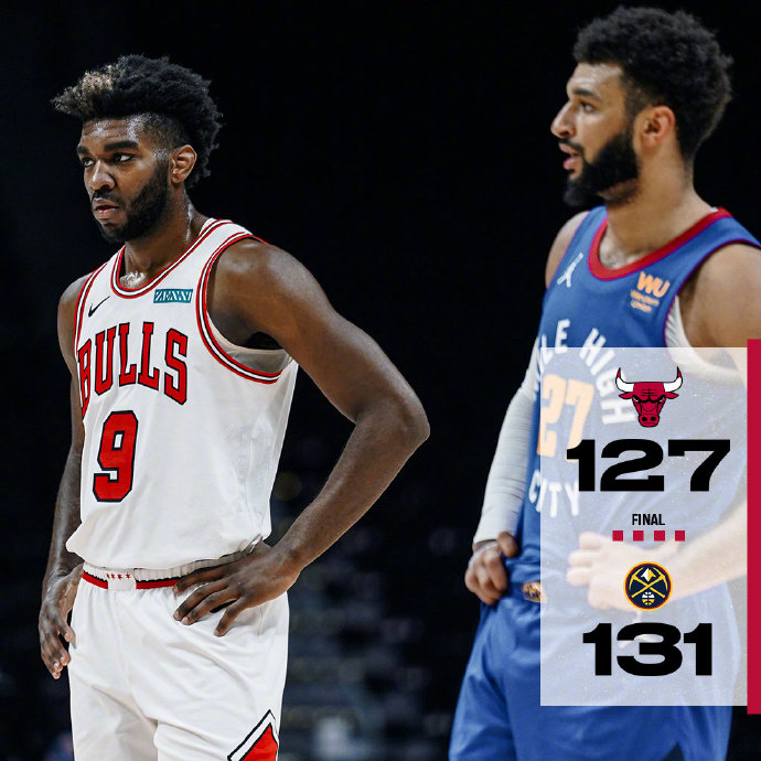 24直播网3月20日讯 NBA常规赛,掘金今日迎战公牛,前者两连胜后排在西部第五的位置,而后者上场比赛则是输给了马刺,目前排在东部第九位。比赛上来公牛就展示了火热的外线手感,连续命中多记远投,一波11-0的小高潮后分差也是达到了两位数,整个上半场掘金都处在落后追分的状态,半场结束时公牛领先8分。易边再战,掘金的进攻表现明显有了起色,但无奈他们依旧无法限制住对手的攻势,所以一直没能实现反超,但进入末节公牛的命中率终于是出现下降,掘金则把握住机会在比赛结束前追上比分,关键时刻拉文两罚全中,穆雷轰进绝平三分,比赛进入加时,加时赛掘金没有再给对手任何机会,上来便打出一波9-0占据主动,公牛此后虽然也开始得分但为时已晚,最终掘金经过加时逆转公牛,迎来三连胜。