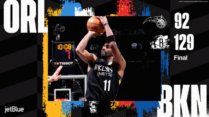 篮网(22-12):哈登20分9篮板7助攻,欧文27分5篮板9助攻,布朗10分3篮板2助攻2抢断,乔-哈里斯14分3篮板2助攻,小乔丹8分10篮板,沙梅特19分9篮板,克拉克斯顿10分3篮板4抢断2盖帽