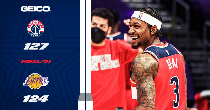 24直播网2月23日讯 最近4场比赛输掉3场的湖人重整旗鼓迎来奇才的挑战,和湖人相反的是,奇才近期连克强敌取得4连胜状态正佳。湖人首节和奇才僵持半节时间后,依靠着哈雷尔连砍8分的表现突围而出取得领先,而在次节他们抗住了奇才的追赶稳守两位数领先,詹姆斯半场贡献13分7助攻的数据帮助湖人建立起14分的领先。然而下半场场面风云突变,奇才在第三节末段用一波16-4的进攻高潮迅速追上比分,末节中段再送10-0的攻势上演大逆转。不过关键时刻湖人接连命中三记三分抹平比分,但詹姆斯最后关键加罚不中错失良机,比赛拖入加时。加时赛中威少联手比尔拿下全部的12分成为取胜功臣,而湖人一路追分被动一直没能扭转局势。最终,奇才逆转湖人迎来5连胜,而湖人遭遇3连败。