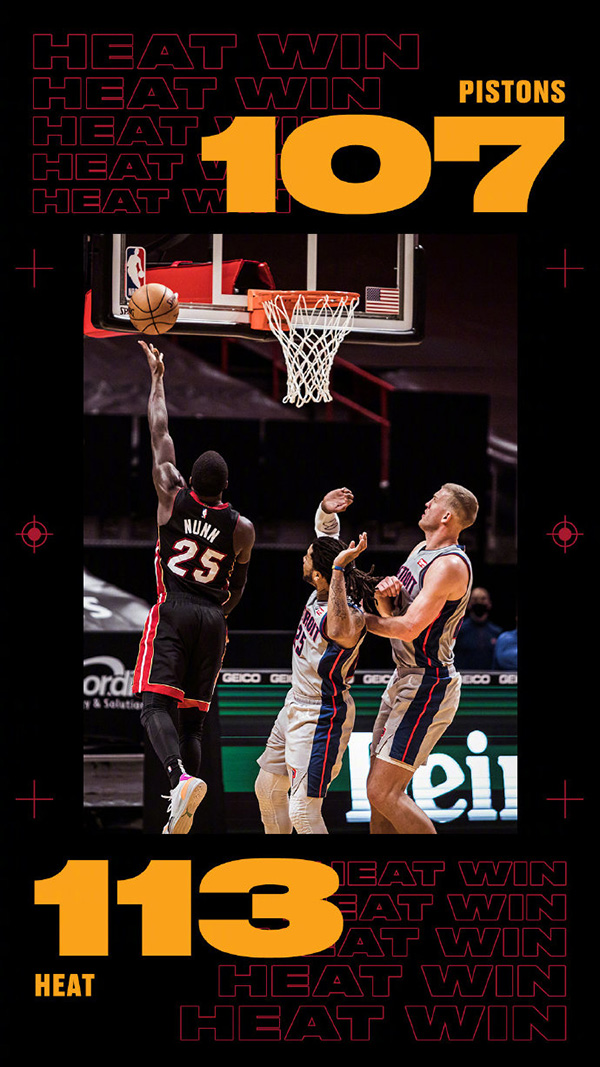 热火(5-7):阿德巴约28分11板5助2断,德拉季奇22分3板3助,纳恩18分5板3助,罗宾逊18分3板3助,奥利尼克9分3板3助,哈克莱斯3分2板3助,伊戈达拉4分3板2助,阿丘瓦8分5板,文森特3分;