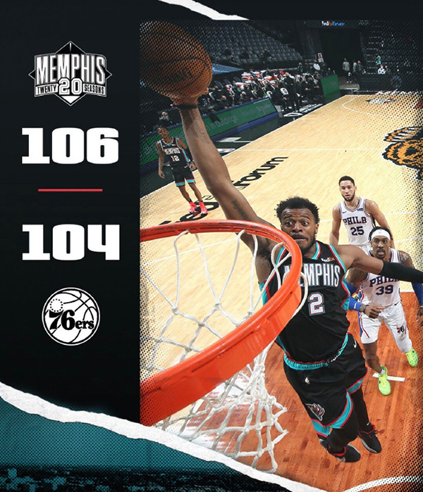24直播网1月17日讯 灰熊今日坐镇主场迎来76人的挑战,缺席了半个月的莫兰特本场迎来复出,76人这边恩比德则因右膝盖疼痛缺阵。首节比赛灰熊在开局慢热的情况下及时找到感觉并迅速追上比分并在第二节出迅速反超比分,76人前半节依靠西蒙斯9分3篮板2助攻的表现尚能咬住比分,但后半节集体哑火,灰熊在莫兰特的带领下送出10-3的进攻取得6分领先结束上半场。第三节灰熊很快便将优势扩大至两位数,76人仅仅抵抗了半节时间又一次末段哑火,灰熊节末再送10-2的攻势取得12分领先。然而末节米尔顿的突然爆发改变走势,他这一节独砍15分帮助76人不断蚕食分差并看到翻盘希望,而莫兰特最后一刻失误给了76人绝杀机会,不过哈里斯随后同样失误葬送良机。最终,灰熊险胜76人迎来4连胜。