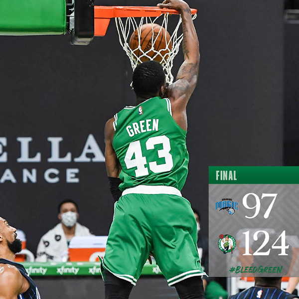 24直播网1月16日讯 NBA常规赛,凯尔特人今日迎战魔术,前者近来一波四连胜升至东部榜首的位置,而后者则是遭遇三连败排名东部第五,本场塔图姆缺战。比赛上来凯尔特人就率先进入状态取得领先,尽管塔图姆缺战,但布朗和普理查德表现不俗,半场结束时场上分差为12分。易边再战,凯尔特人完全占据场上主动,分差也突破了二十分,比赛早早就失去悬念,最终凯尔特人大胜魔术,迎来五连胜。