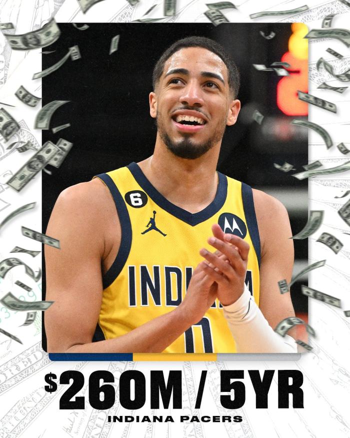 今夏哈利伯顿和步行者提前续签最高5年2.6亿美元的顶薪合同,成为今夏第一位拿到超过2亿美元的大合同,这也是哈利伯顿生涯第一份超级顶薪合同;哈利伯顿成为2013年乔治之后第二位签下制定新秀顶薪续约合同的球员。