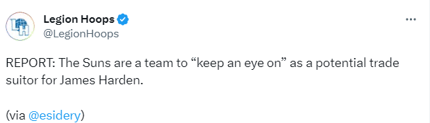 据报道,快船、太阳和尼克斯都是哈登潜在下家,Evan Sidery表示太阳需要找到第三方接纳艾顿的合同,并且把资产送到76人。