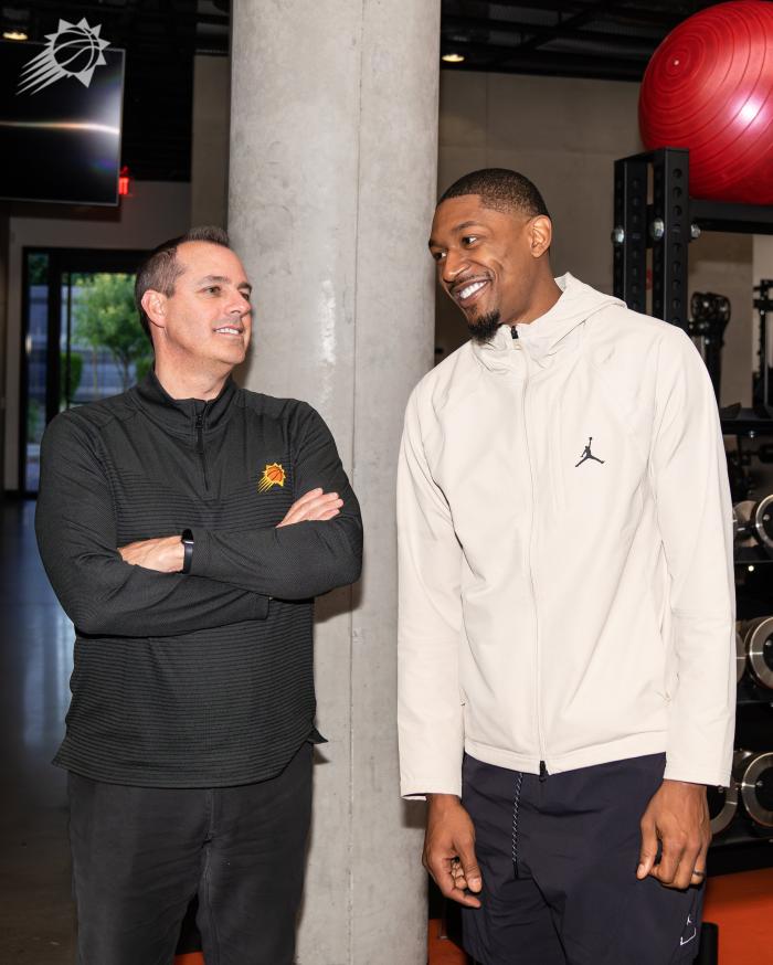 22-23赛季,太阳在季后赛次轮2-4不敌掘金被淘汰出局,之后太阳老板伊什比亚决定围绕杜兰特和布克重新打造冲冠阵容,下令解雇蒙蒂并且聘请前湖人冠军教头沃格尔,通过一笔三方疯狂交易,送走保罗、沙梅特和未来选秀权从而引援比尔。