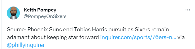 76人一直坚定地表示,目前他们不打算交易哈里斯。
