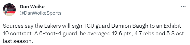 24直播网讯06月25日,据湖人随队记者Dan Woike报道,湖人与落选后卫达米恩-鲍签下一份Exhibit-10合同;湖人捡漏再签一人打造夏联名单,克里斯蒂领衔8人夏联名单,众落选秀继续冲击NBA。