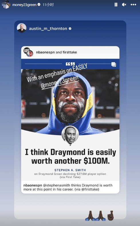此前格林已经拒绝执行最后一年2750万美元的球员选项,目标冲击生涯最后一份大合同,勇士新总经理邓利维表示他们想要和格林续约,交易普尔后更表明他们想和格林续约的态度。