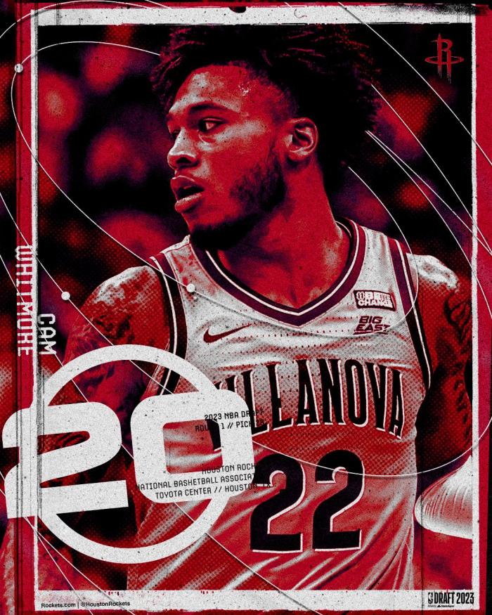 在NBA选秀时,本来被看好能在前五顺位被选中的惠特摩尔,选秀行情一路下跌,最终火箭捡漏,用20号签选中他;期间惠特摩尔一度黑脸十分无奈,戴上火箭选秀帽后他挤出笑容。