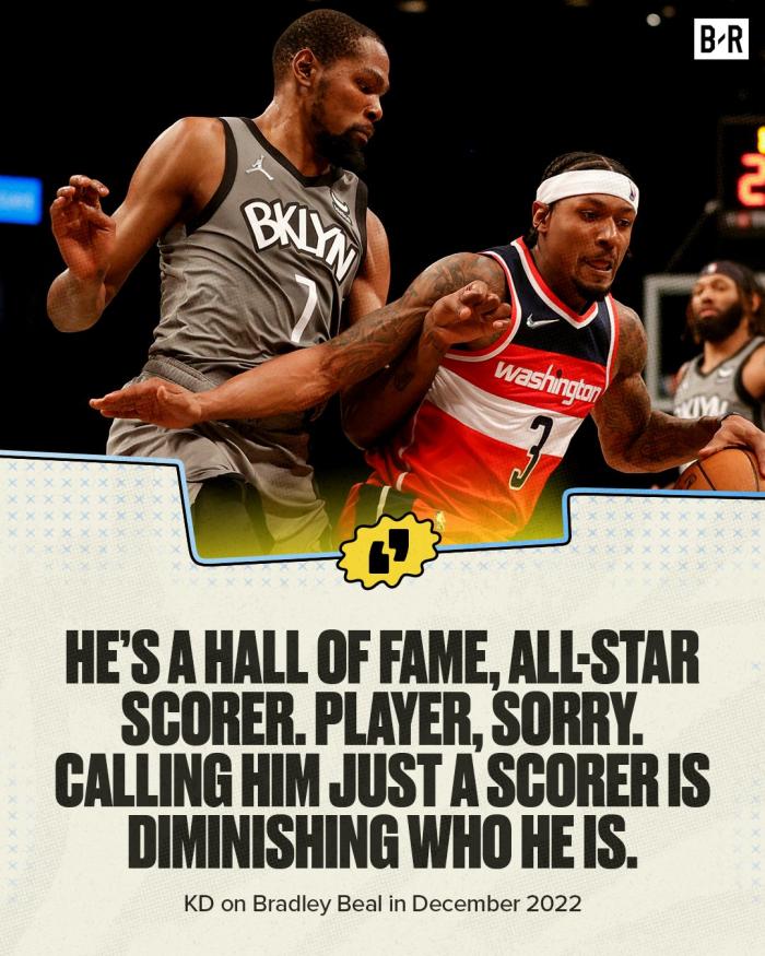 杜兰特去年夸赞比尔的言论被挖,2022年12月,篮网时期的杜兰特公开表示:比尔是名人堂成员,全明星得分手。对不起,仅仅称他为得分手是在贬低他的身份。