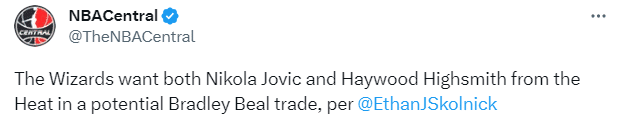 不过据美媒NBA Central报道,奇才想在比尔的潜在交易中,从热火得到包含约维奇和海史密斯的筹码。