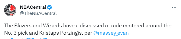 NBA记者Evan Massey报道,开拓者与奇才已经围绕今年3号签与波尔津吉斯进行了交易讨论,可能会涉及一些其他筹码,目前值得关注。