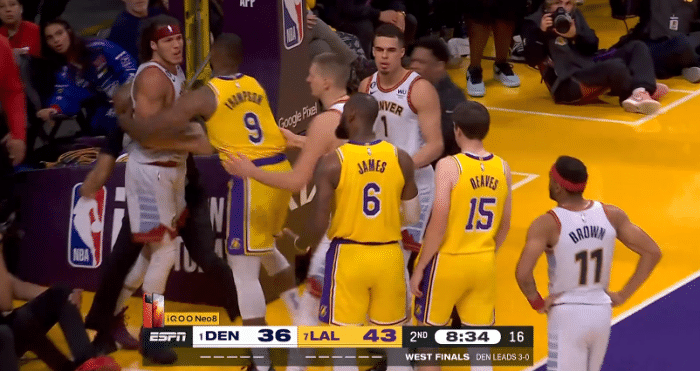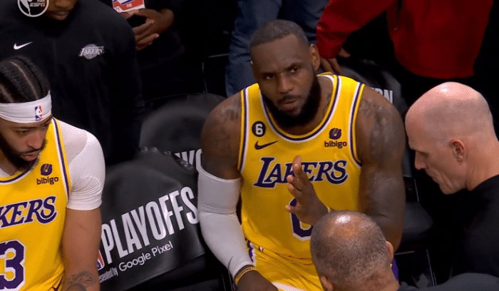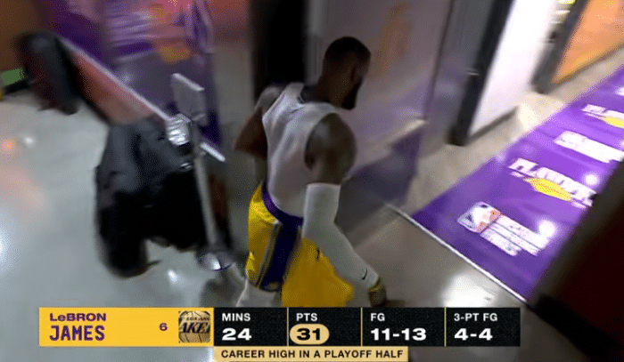 冲突之后,詹姆斯继续杀到禁区得分,暂停期间,詹姆斯还坐在替补席指导球队,场内外都扛起球队,老詹无愧湖人真领袖,打满24分钟拼尽全力,满头大汗真是太拼了。