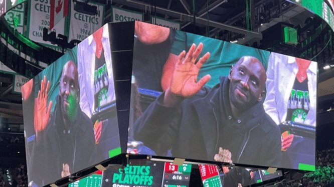 24直播网讯05月20日NBA季后赛东部决赛G2,凯尔特人继续在主场迎战热火,首战凯尔特人主场输球,所以今天的比赛他们不容有失。此役新疆男篮外援、前凯尔特人球员法尔来到现场,为老东家助威。比赛一波三折,凯尔特人打出一波21-4,而热火也还以颜色,紧咬比分差距。