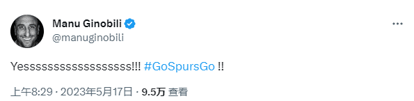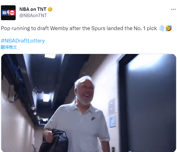 马刺状元签冲上全美热搜第一名引热议,美媒调侃波波维奇开怀大笑奔跑的画面;马刺名宿吉诺比利发推庆祝,他写道:Yessssssssssssssssss!!! #狗刺走你!!