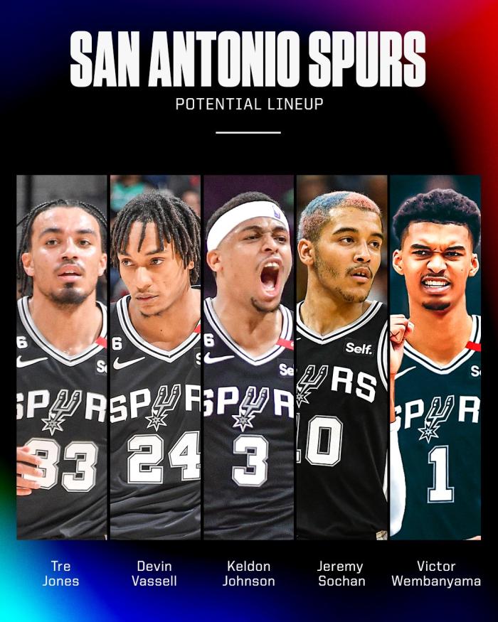 美媒预测马刺新赛季首发五虎是琼斯、瓦塞尔、约翰逊、索汉和文班亚马。