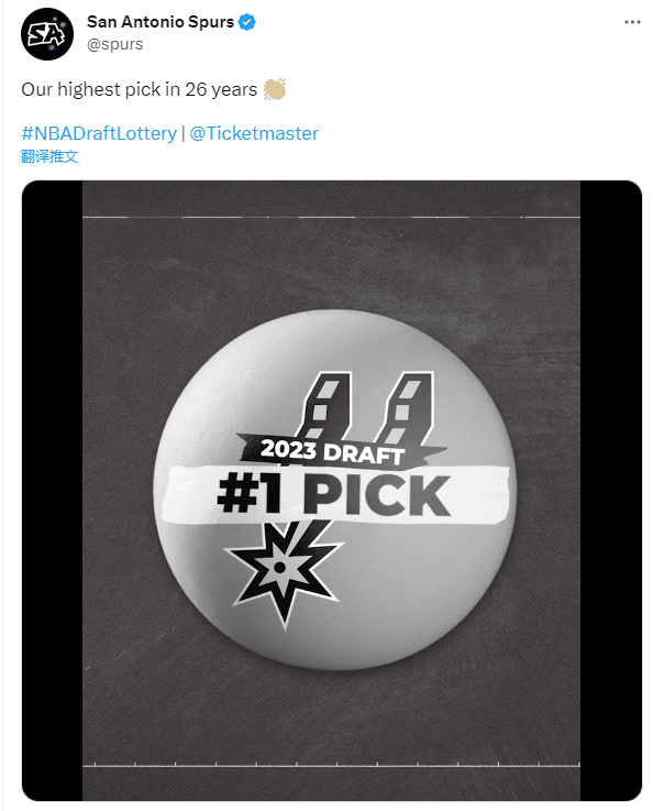 马刺如愿抽到状元签,这是马刺队史第3个状元签,也是马刺时隔26年再次获得状元签,1997年马刺用状元签选中邓肯,一个状元用了20年并且5次夺得总冠军;如今马刺又抽到状元签,预计他们将会选中文班亚马。