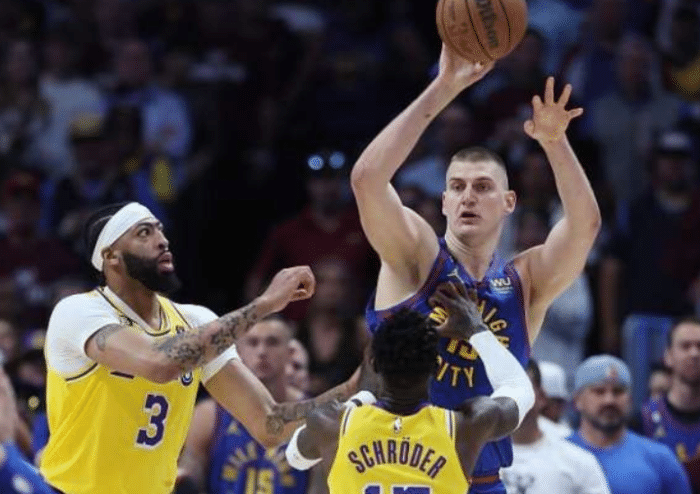 24直播网04月17日讯 ,NBA季后赛西决G1,掘金主场击败湖人约基奇全场17投12中狂砍34分21篮板14助攻2盖帽,三节轰下30+超级萨三双打爆约基奇,迎着浓眉轰进压哨三分太狠,一战狂刷多项历史纪录;不过约基奇末节哑火险遭逆转,所幸关键四罚三中锁定胜局,詹姆斯致命失误葬送比赛。