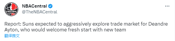据报道,太阳预计会积极兜售艾顿,后者可能已经打完了太阳生涯最后一战,而且艾顿将对在另一支球队的新开始感到兴奋;尽管艾顿在对阵掘金的系列赛中表现不佳,但会有几支球队对他产生兴趣。