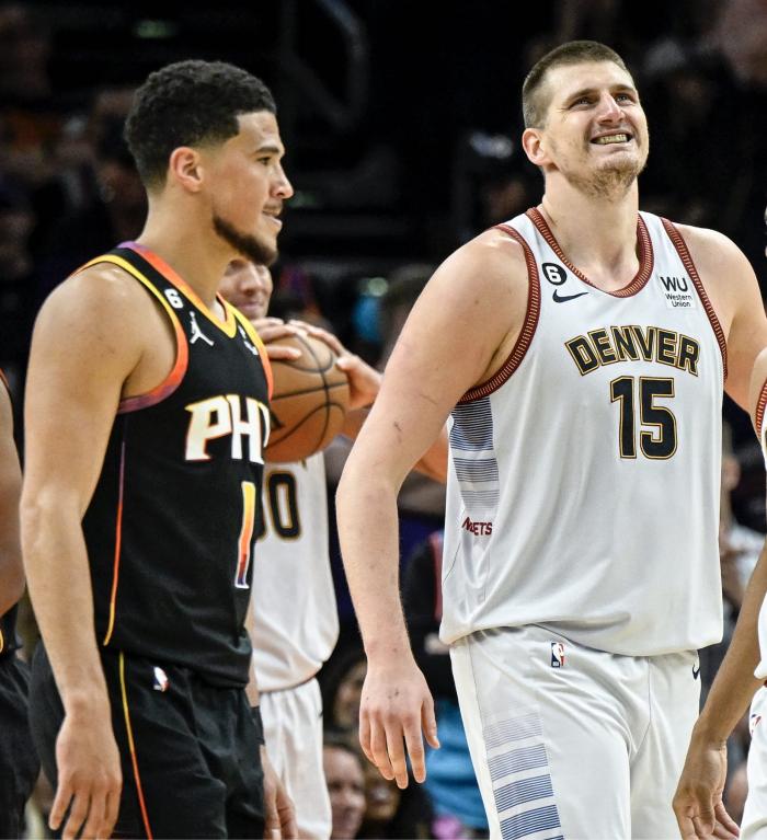 太阳和掘金G4关键一战,保罗仍旧因伤缺席,杜兰特和布克两大巨头再次扛起球队进攻大旗,杜兰特36分11篮板6助攻,布克36分12助攻6篮板,太阳双巨G4合砍72分,G3则是合砍86分,两战狂砍158分太疯狂,联盟最强王炸让约基奇沦为背景板。