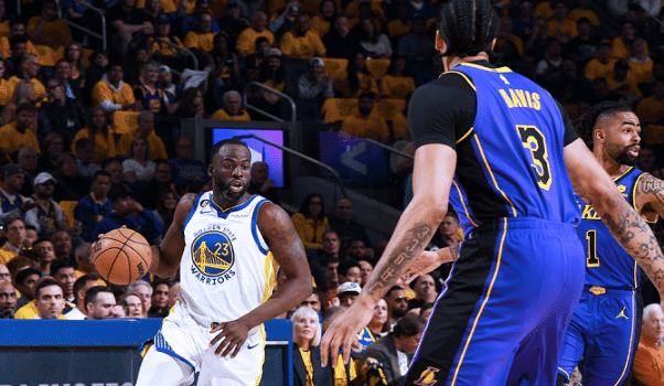 24直播网05月05日讯 NBA季后赛西部半决赛湖勇大战G2,勇士输掉第一场之后进行调整,杰迈克尔-格林进入首发,卢尼因为生病的原因,此役坐在替补席上,勇士想要晋级,必须要捍卫主场。上半场结束,湖人的詹姆斯和八村塁表现强势,詹姆斯轰下21分,八村塁14分。勇士的克莱命中5记三分球得到19分,上半场勇士67-56​领先湖人。