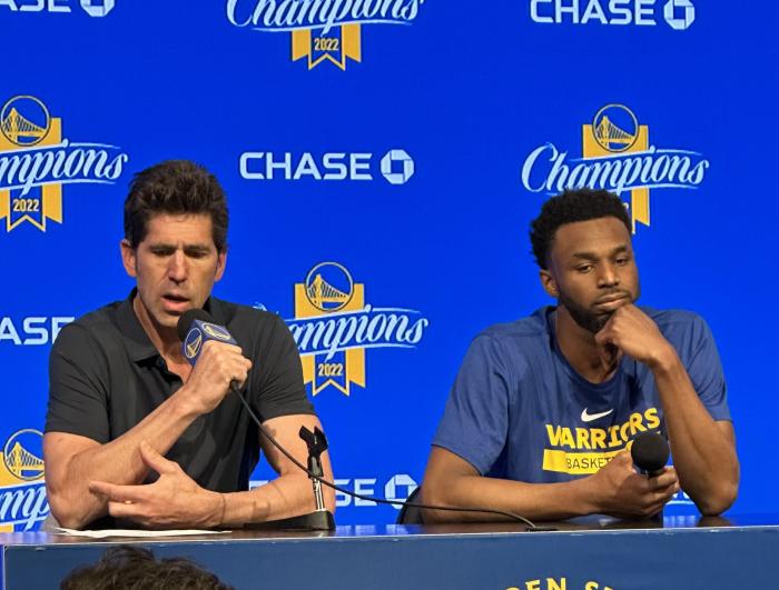 维金斯身穿勇士训练服正式亮相,和鲍勃-迈尔斯一起接受采访,维金斯谈到回归,表示:当你处于某种情况并且你的家人需要你,需要你的关注和爱时,那(陪伴家人)是我的首要任务,家庭对我来说永远是第一位的。