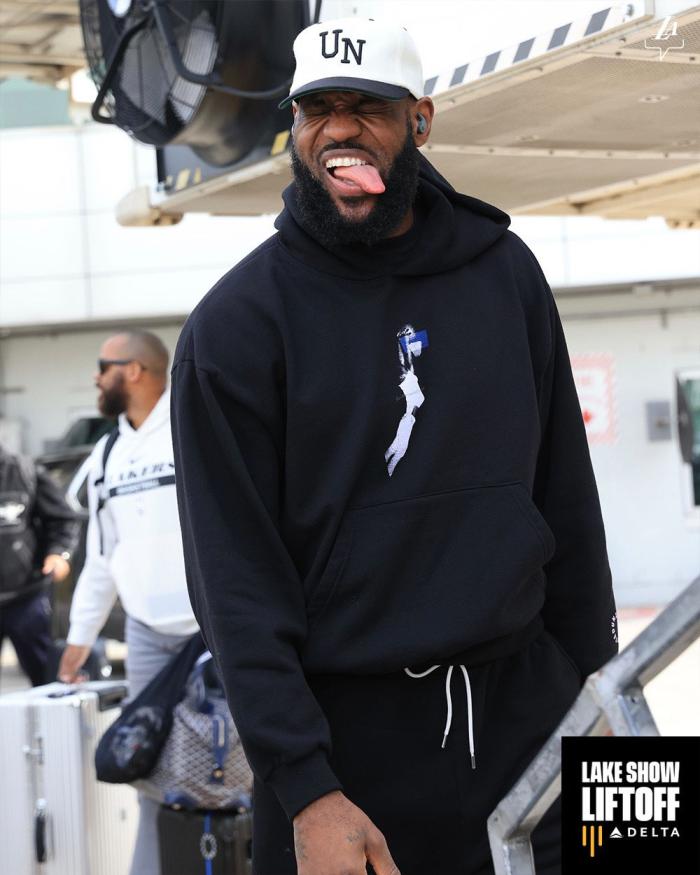 湖人出征挑战森林狼:詹皇吐舌表情抢镜 有望升到西部第7