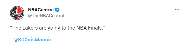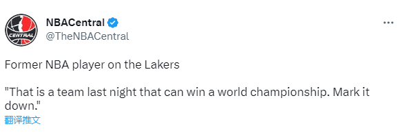 美媒《体育画报》名嘴克里斯-曼尼克斯表示湖人将会晋级总决赛;前NBA球员&现任评论员的杰-威廉姆斯昨晚的湖人队能够夺得总冠军。